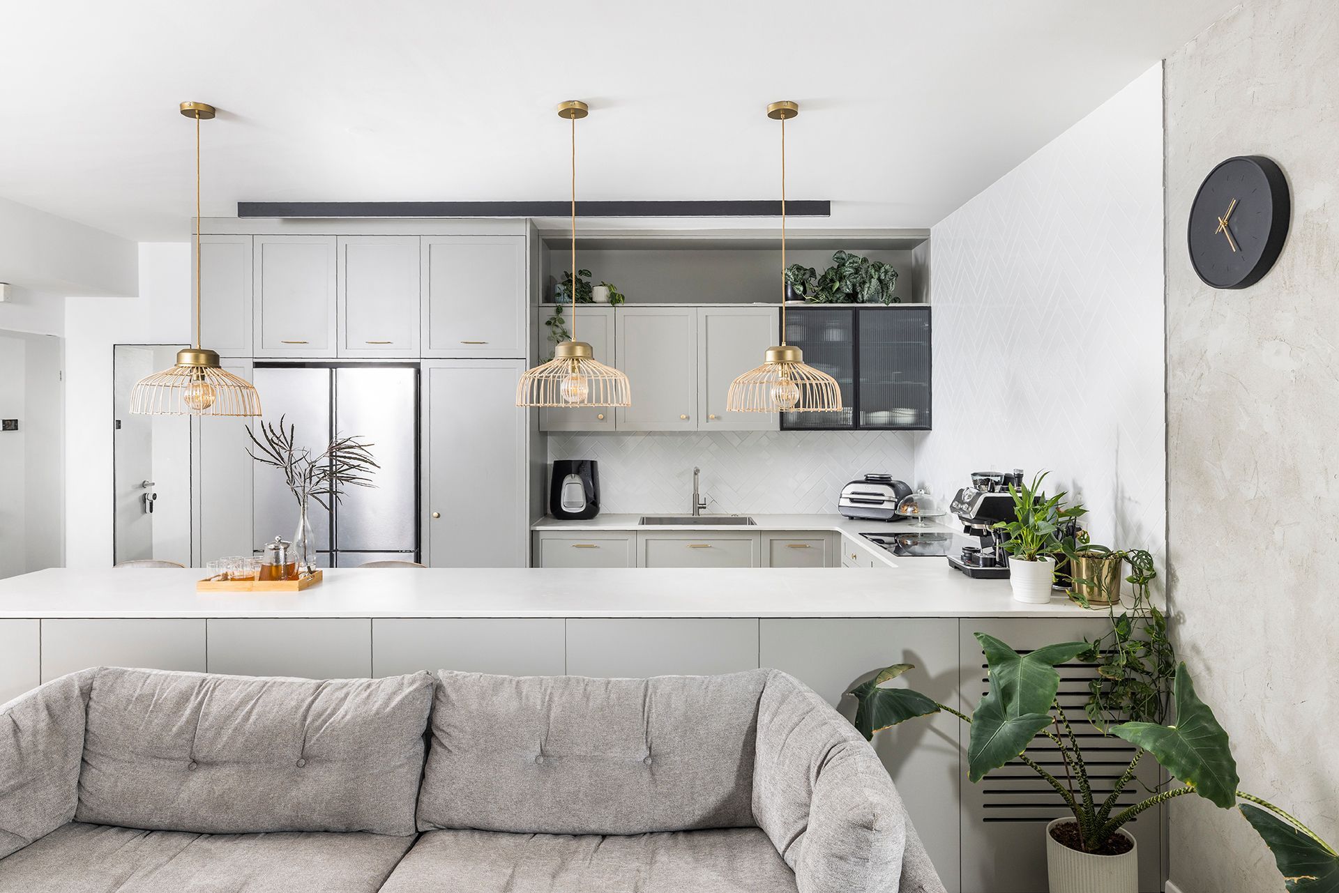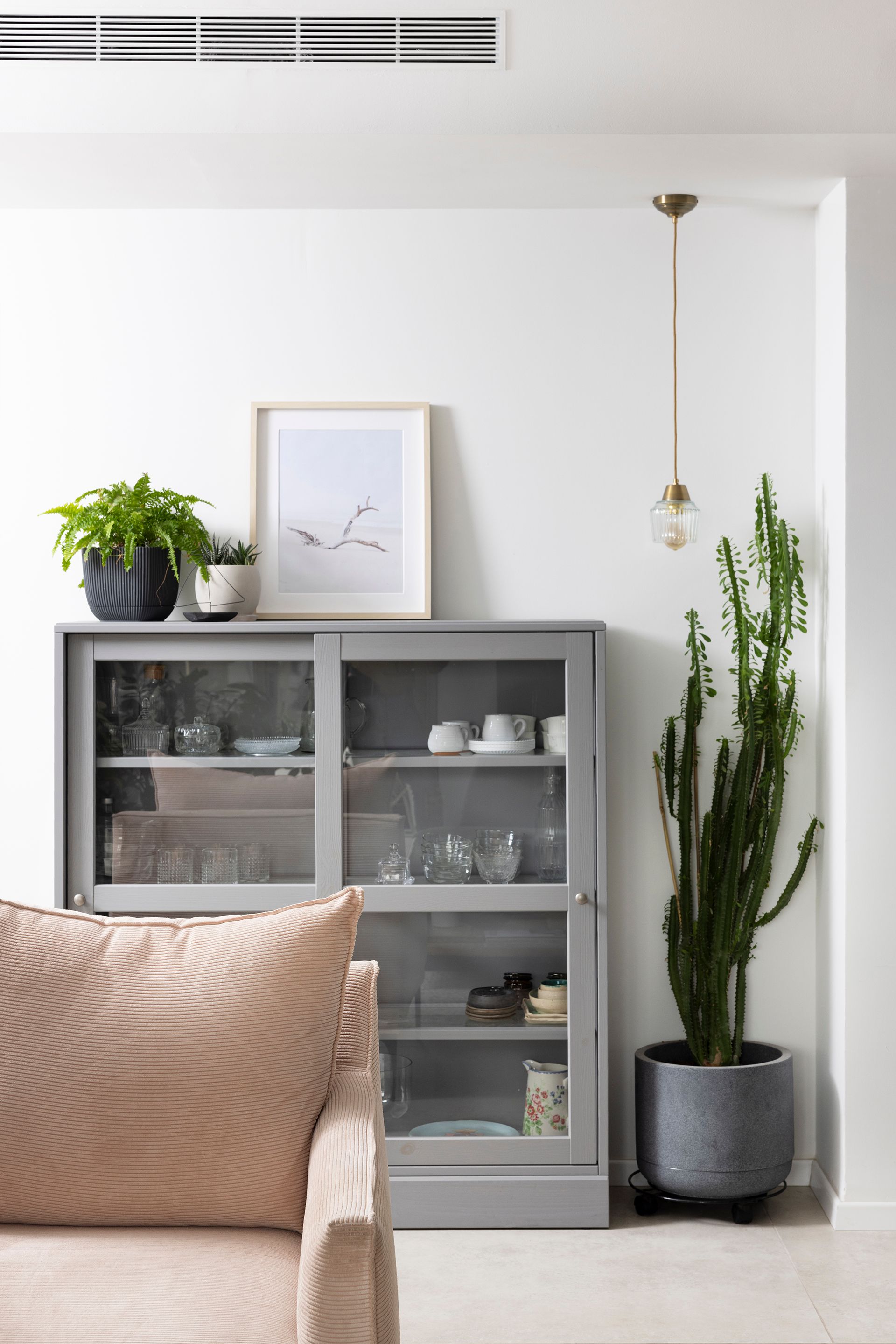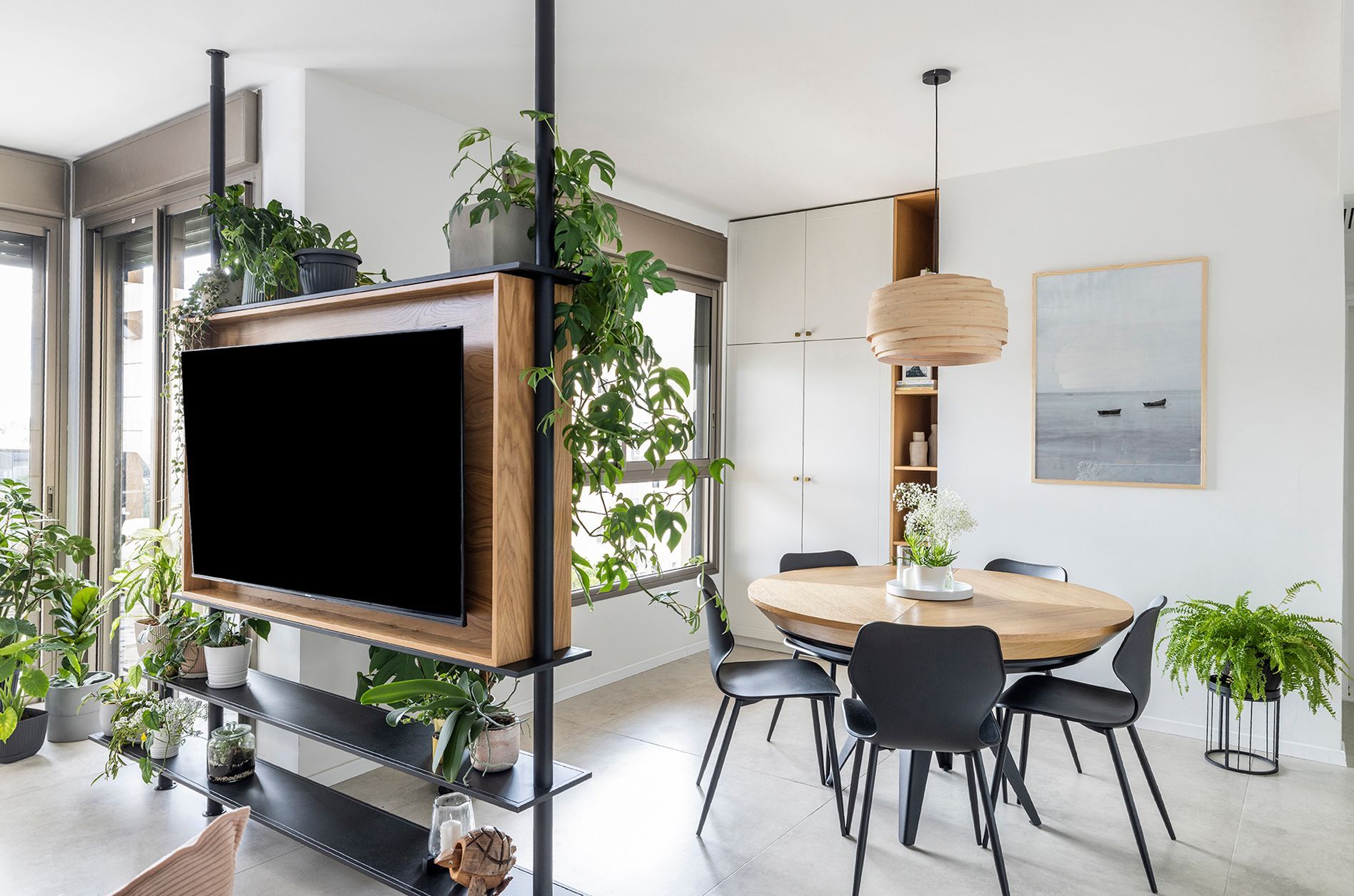 שיפוץ מלא לדירה, שבה המטבח היה קטן וצפוף וכדי להגדילו, בוטל החדר הצמוד לסלון אליו הועברה פינת האוכל, והמטבח עבר לגב הסלון בכניסה לבית. בין הסלון לפינת האוכל תוכננה יחידת ברזל עבור תליית הטלוויזיה ומקום לצמחיה. בחלל המטבח הישן תוכנן חדר לבת הקטנה. חדרי השינה תוכננו באופן מוקפד ומותאם לצרכי כל אחד מבני הבית. בחדר ההורים הוחלף קיר חדר הרחצה במחיצת זכוכית המגדילה את החלל ומאפשרת כניסת אור טבעי לחדר. חדרי הבנות שופצו, ותוכננו עם נגרות מותאמת ובאווירה בוגרת, התואמת לגילן. הדגש הראשוני של בעלי הבית, היה לייצר מקום עבור צמחיה, שכל כך אהובה עליהם בבית, ולכן הושם דגש למצוא פתרונות מוארים עבור גדול הצמחים.