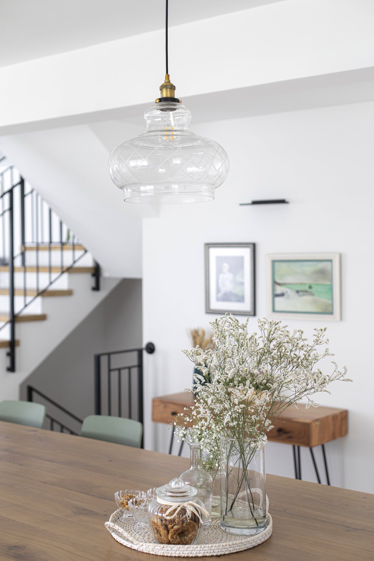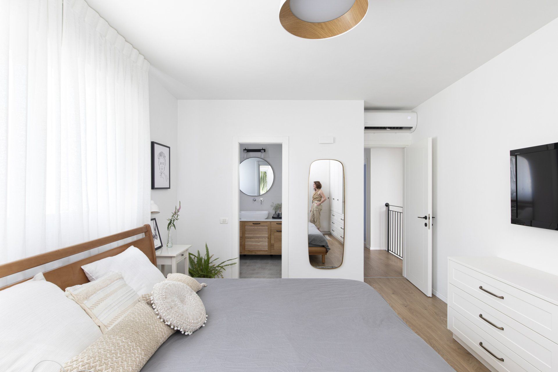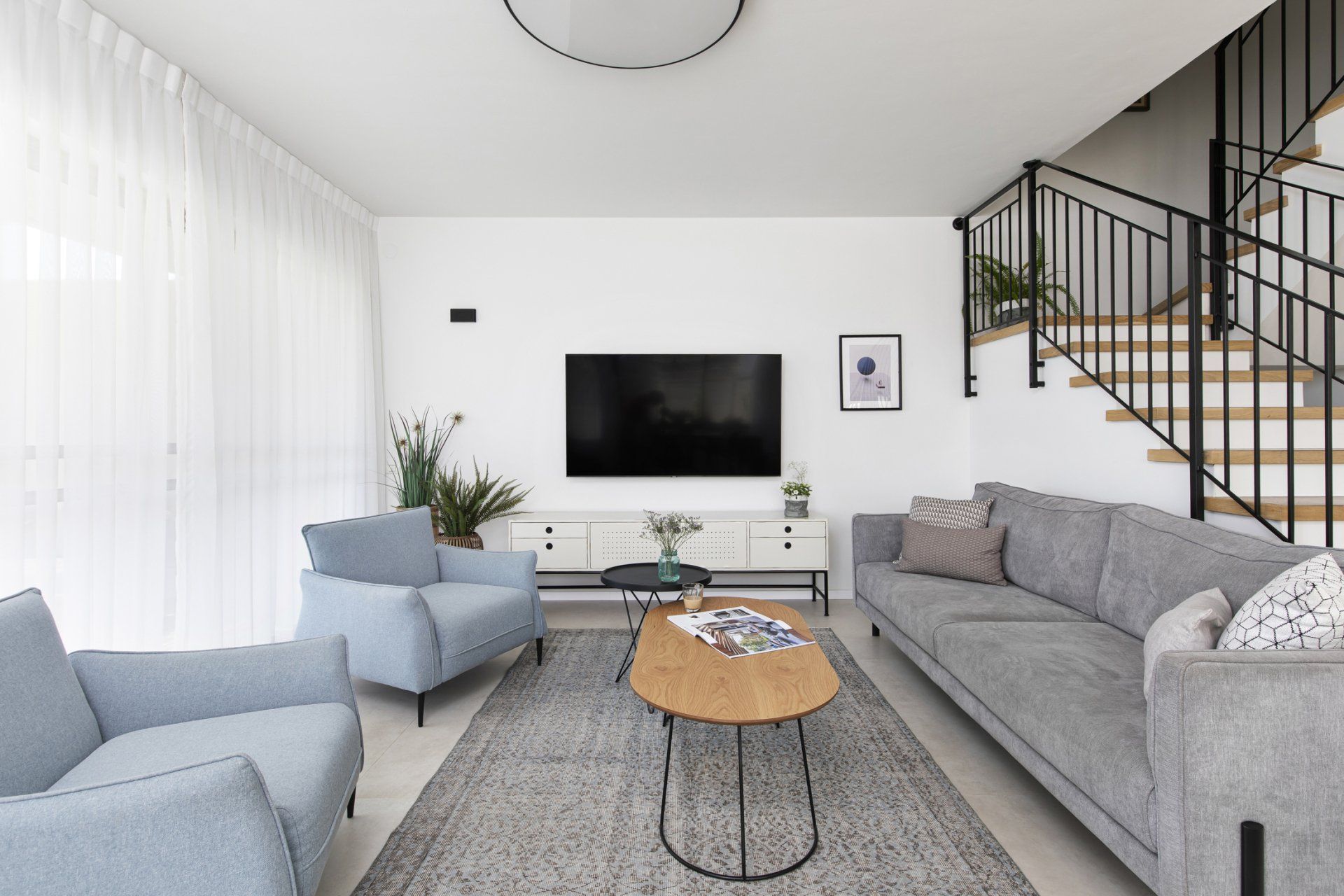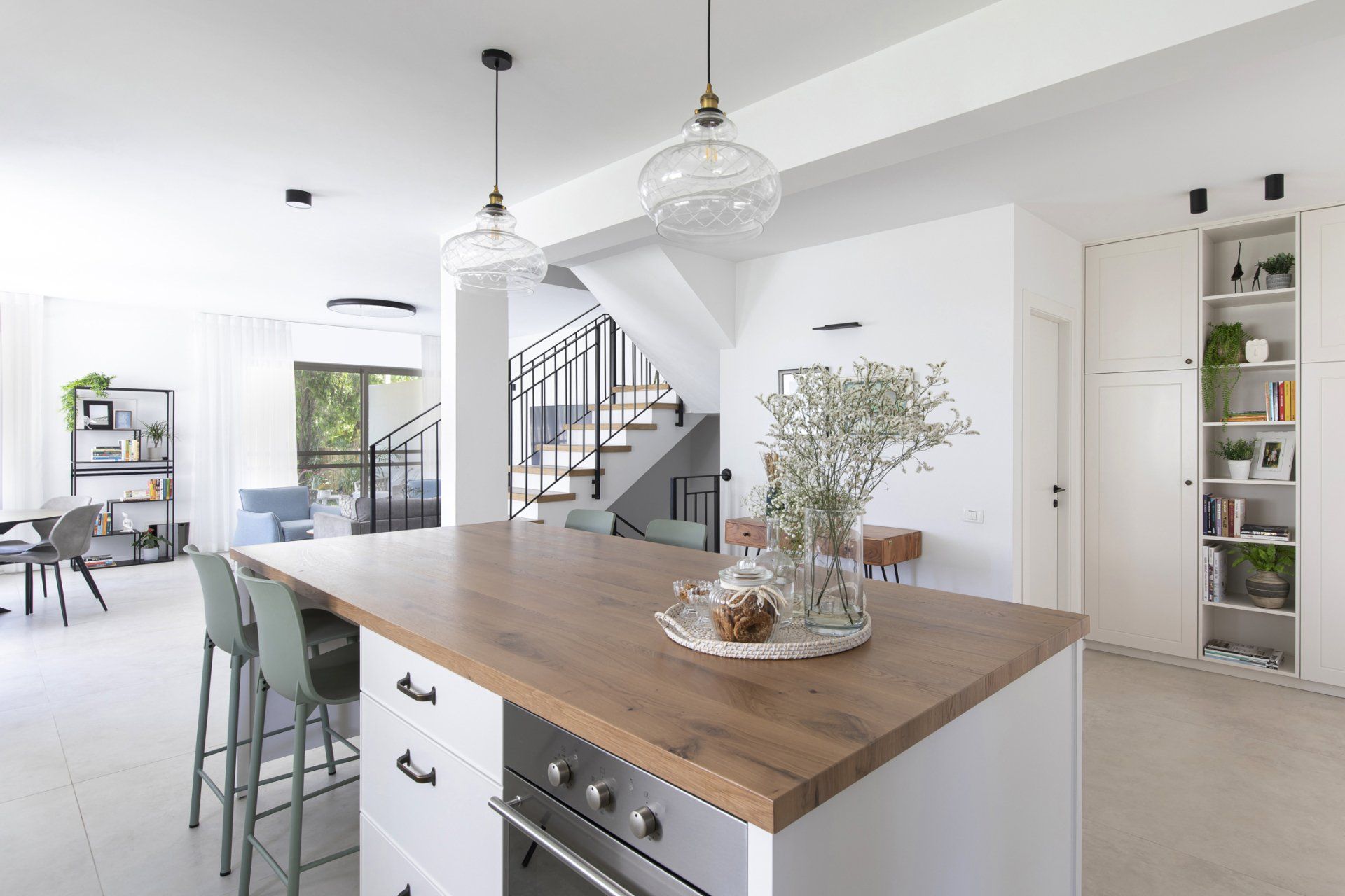 שיפוץ מלא לבית במודיעין. במקור, החלל הציבורי היה צפוף וסגור, כאשר בצמוד למטבח קיים ממ"ד ובין המטבח לסלון קיים גרם מדרגות. הממ"ד פורק ונבנה ממ"ד חלופי במרתף, וגרם המדרגות הפך קליל יותר ע"י החלפת מעקה בנוי במעקה קל - דבר שיצר חיבור בין אזור המטבח לחלל האירוח. הבית מוקף חצר והחיבור בין החללים מאפשר צפייה רחבה יותר לחצר. תוכנן מטבח רחב ידיים עם אי מרכזי שממנו יציאה לחצר האחורית. אופיו של הבית ניכר בקווים נקיים, בצבעים רכים ובעיצוב כפרי התואם את מיקומו ואופיים של בעלי הבית.