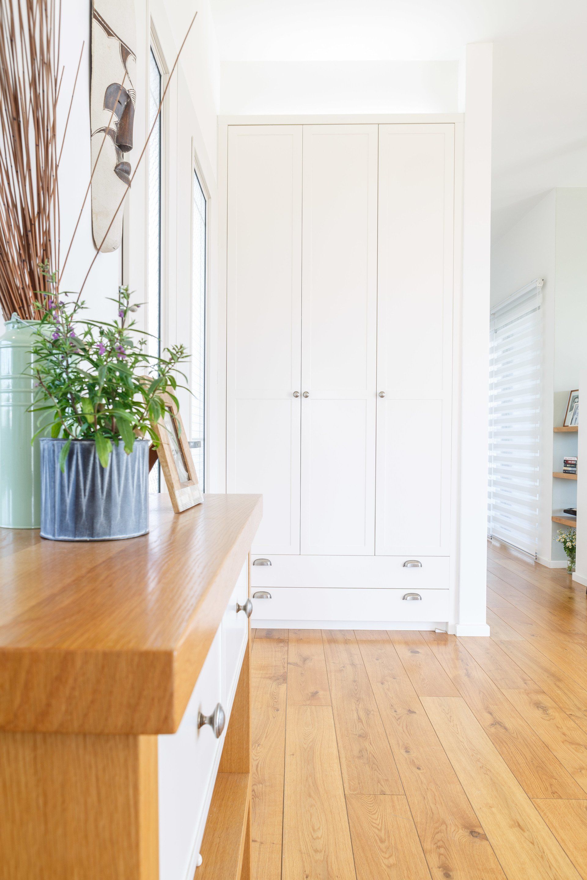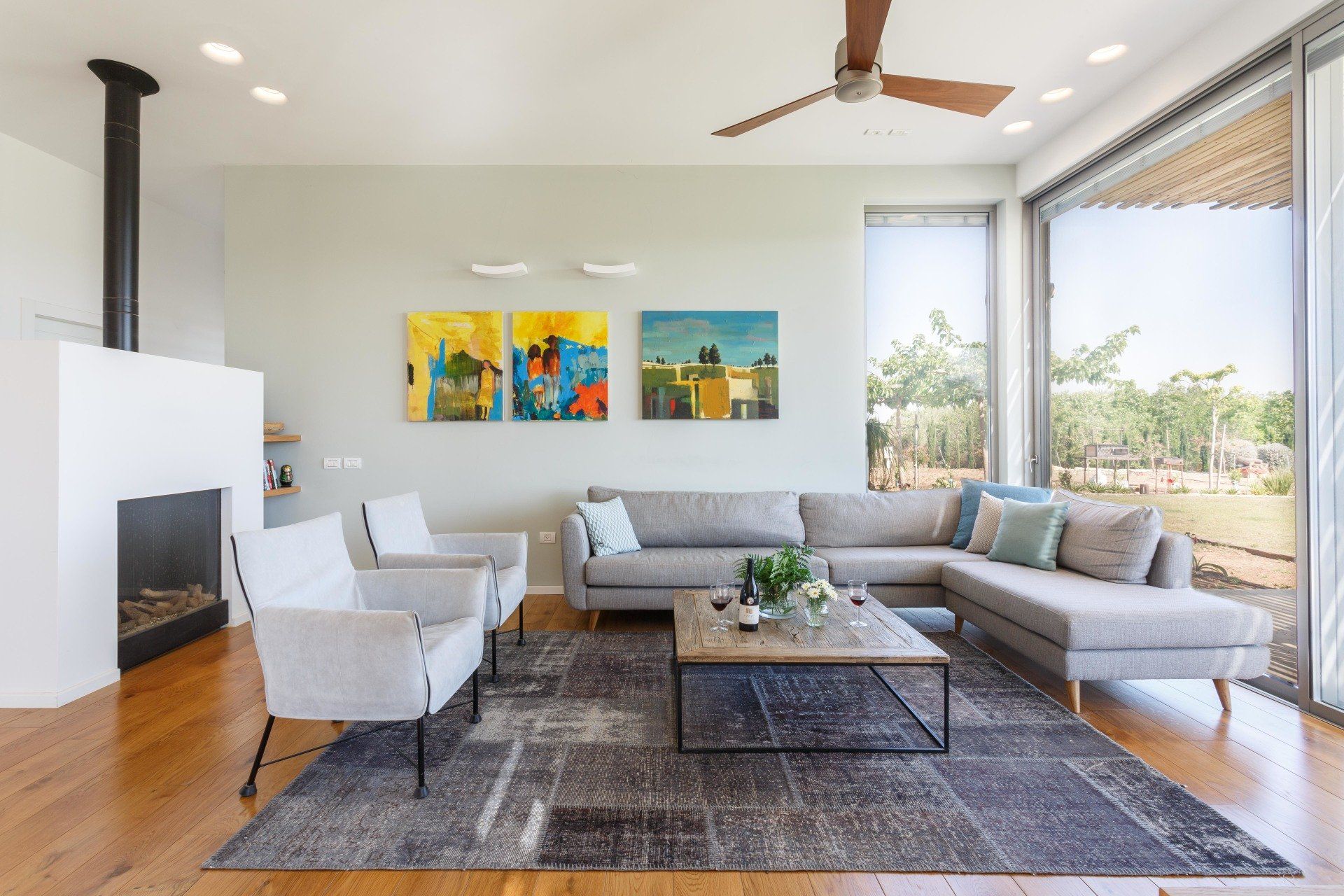 תכנון ועיצוב בית חדש בשטח הפונה לכרם. הבית כמלבן ארוך במרכזו החלל הציבורי, מצדו האחד אזור השינה של ההורים, ומצדו השני של החלל הציבורי ממוקמים חדרי-הילדים. החזית הפונה לכרם רצופה במפתחים גדולים, כך שגם חלל האירוח וגם חדרי השינה פונים אליו. הבית מוקף בכמה אזורי ישיבה: האחד ביציאה מהסלון ופינת האוכל, השני מהווה חצר פנימית לחדרי הילדים, והשלישי בחזית הקדמית - כאשר חלונות שני חדרי ילדים מחוברים בניהם בספסל בו ניתן לשבת ולארח חברים. אופיו של הבית ניכר בקווים נקיים ובעיצוב כפרי התואם את מיקומו ואופיים של בעלי הבית.