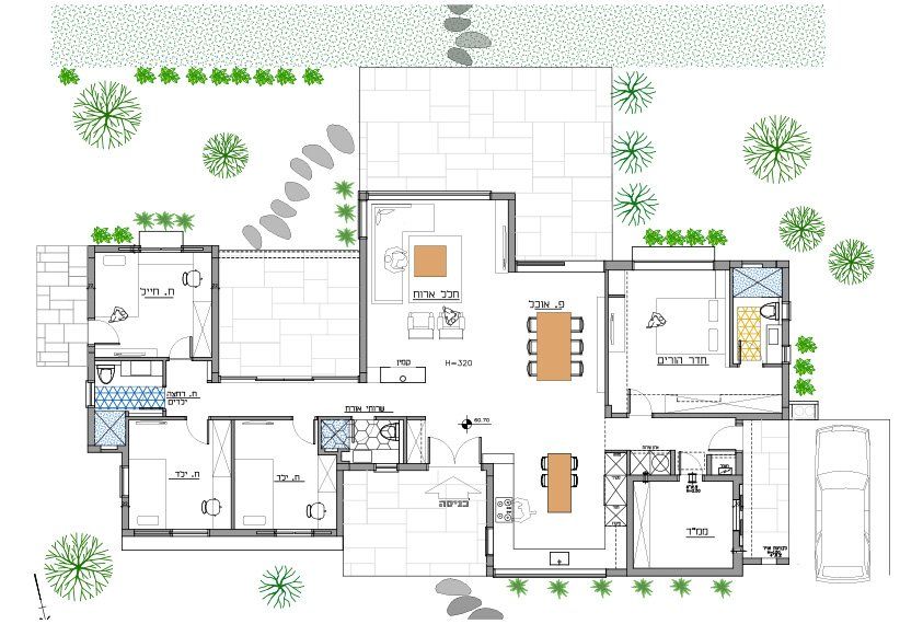 מושב בשפלה - שטח המגרש 3 דונם, שטח הבית 193 מ"ר, הדיירים זוג+3 נערים מתבגרים.